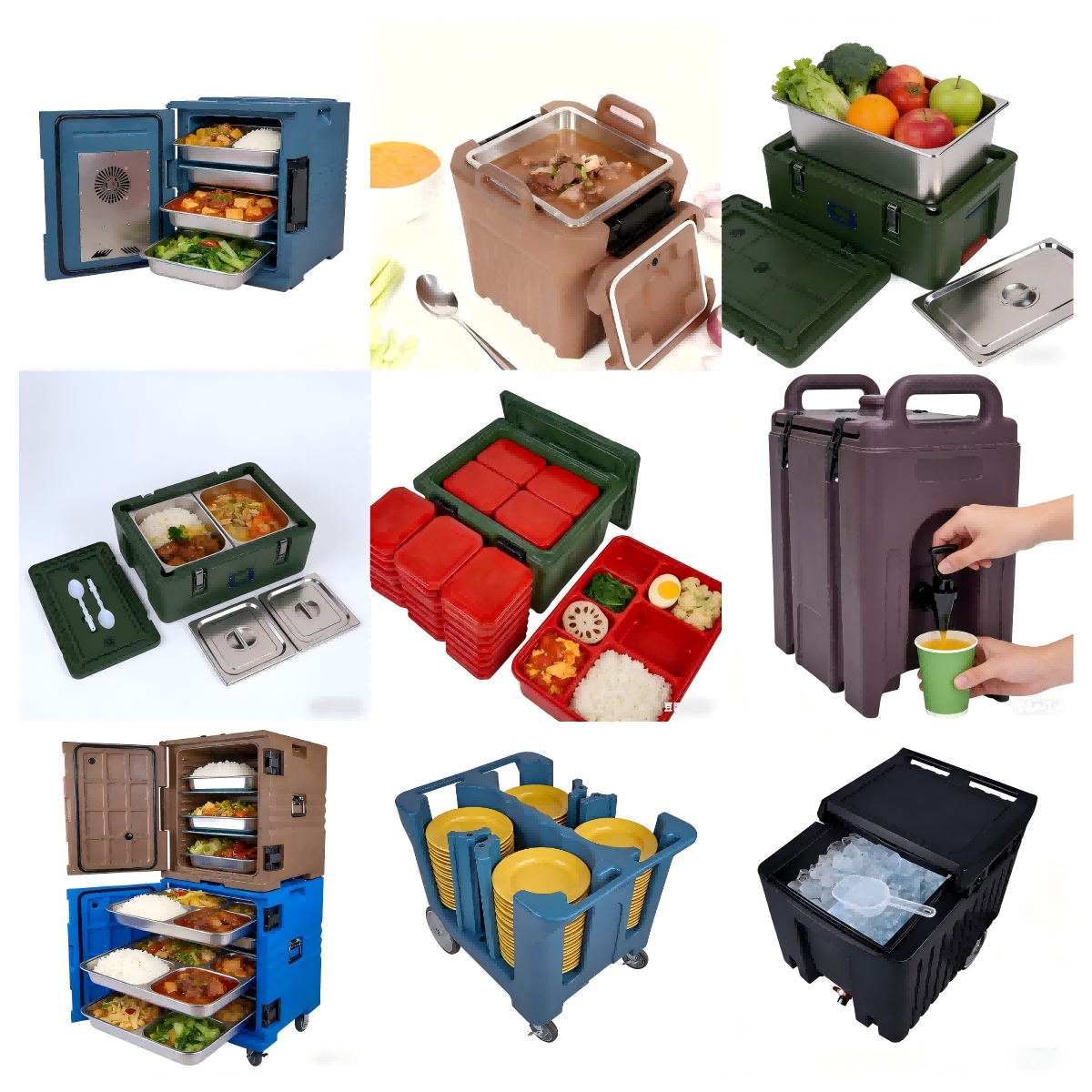 Nossos equipamentos de catering são aplicados em hotéis, escolas para distribuição de refeições, empresas de catering para isolamento de lancheiras e isolamento de dupla finalidade para aquecimento e resfriamento, proporcionando isolamento e frescor duradouros.